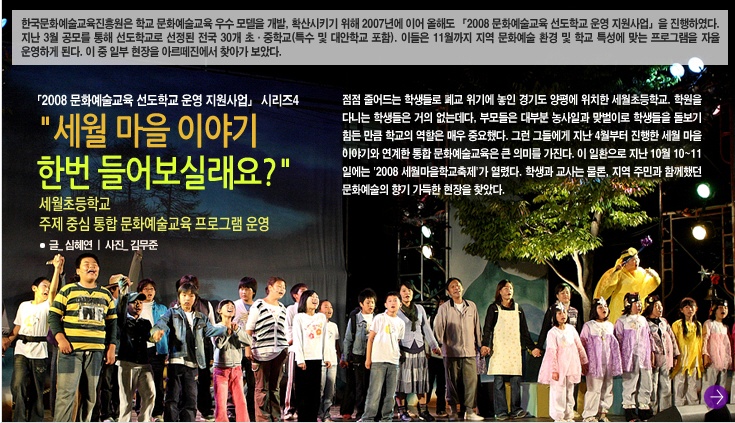 - 문화관광부 “문화예술교육 활성화 중장기 전략” 발표(2007~2011)