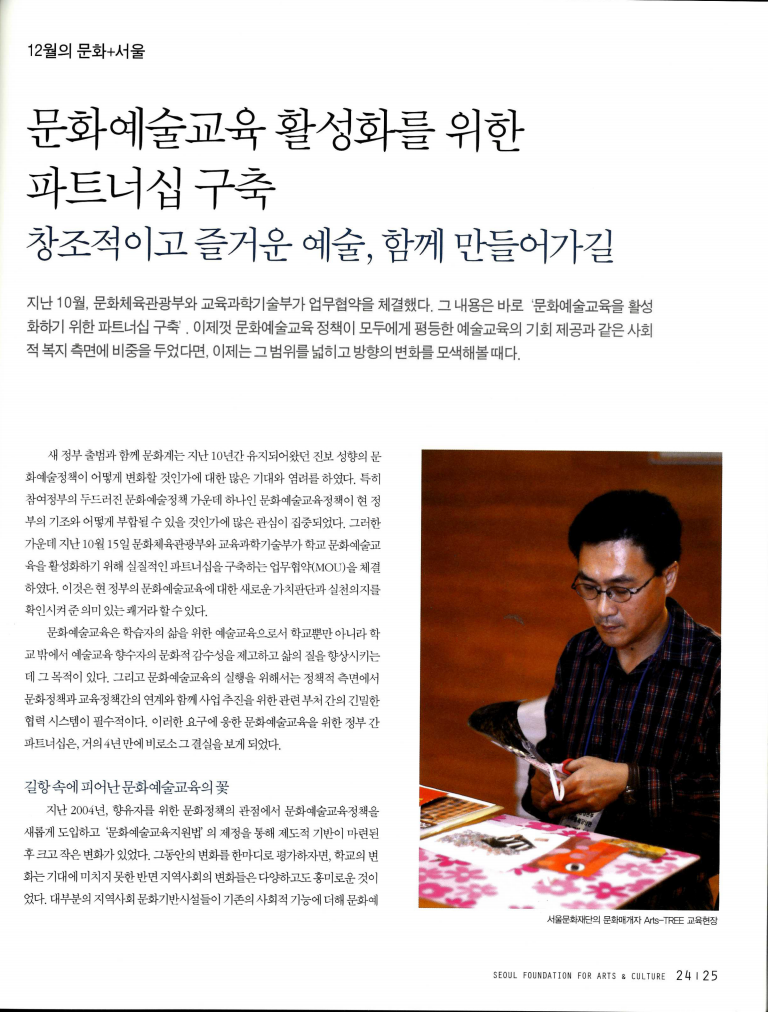 - 문화체육관광부X교육과학기술부 “창의성과 인성 함양을 위한 초중등 예술교육 활성화 기본방안” 발표