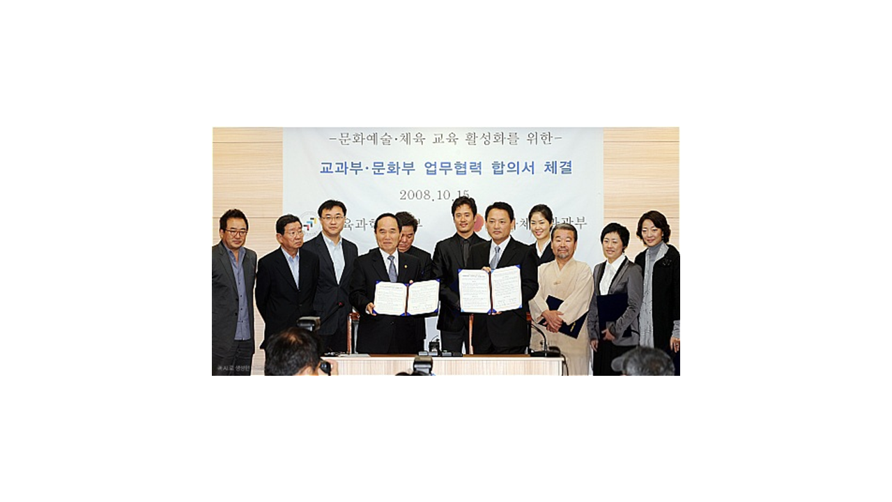 - 문화체육관광부x교육과학기술부 업무협약(MOU) 체결, 학교 예술강사 지원사업 지방교육재정 매칭 시작
